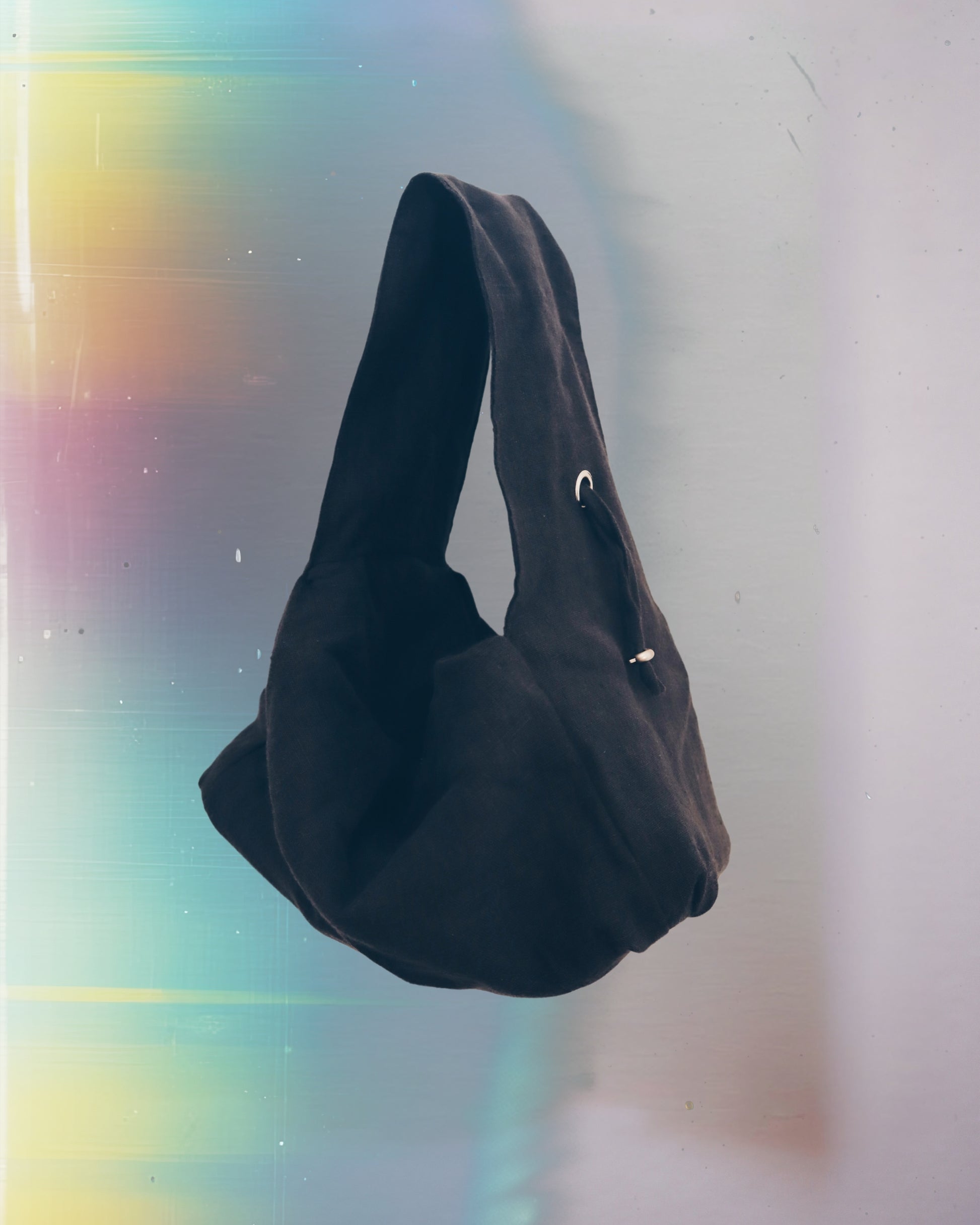 Handcrafted one-of-a-kind small shoulder bag featuring a soft compact shape and a sturdy bottom for added stability and shape retention. This dumpling inspired bag opens with a magnetic snap to allow for easy and generous access to all your daily essentials.
